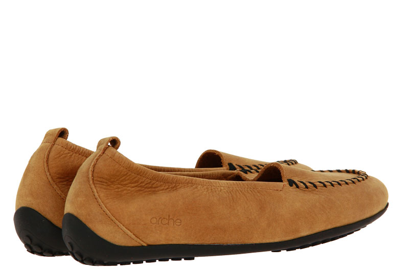 The timeless, light brown Arche loafer made of fine nubuck leather is a very comfortable companion. The lining is also made of soft leather. Equipped with a flexible rubber outsole, Arche shoes are very well made in France.