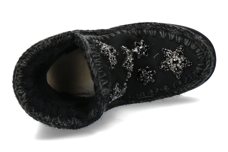 The ankle boots by MOU in black are real eye-catchers. The upper was made of soft suede. Star crystals in black and hand-crocheted seams of sheep's wool adorn the shoe. The lining is made of the best lambskin and ensures warm feet in winter. In addition, the ankle boot has a wedge heel. The outsole is as usual an EVA sole, which is flexible and cold-resistant. A MUST HAVE!
